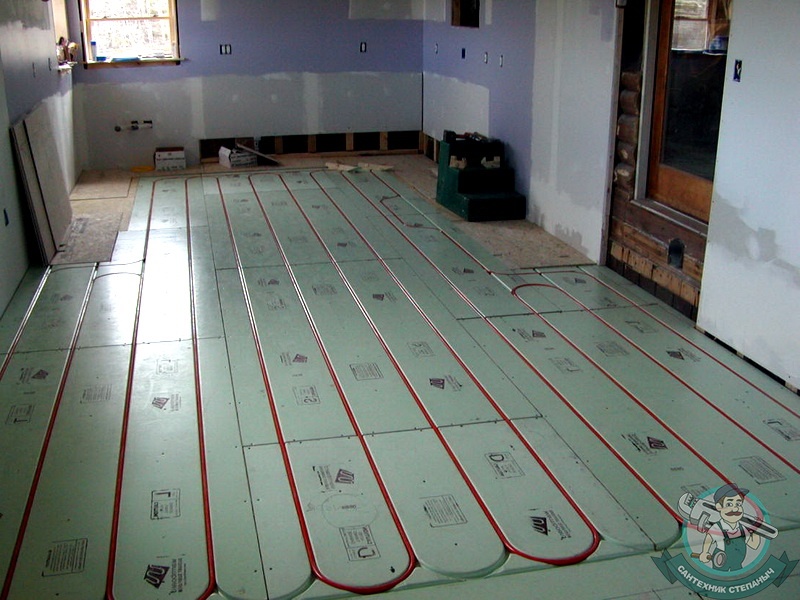 Бетонный способ укладки водяного пола - отопительные трубы необходимо уложить и сверху залить их бетонной стяжкой.