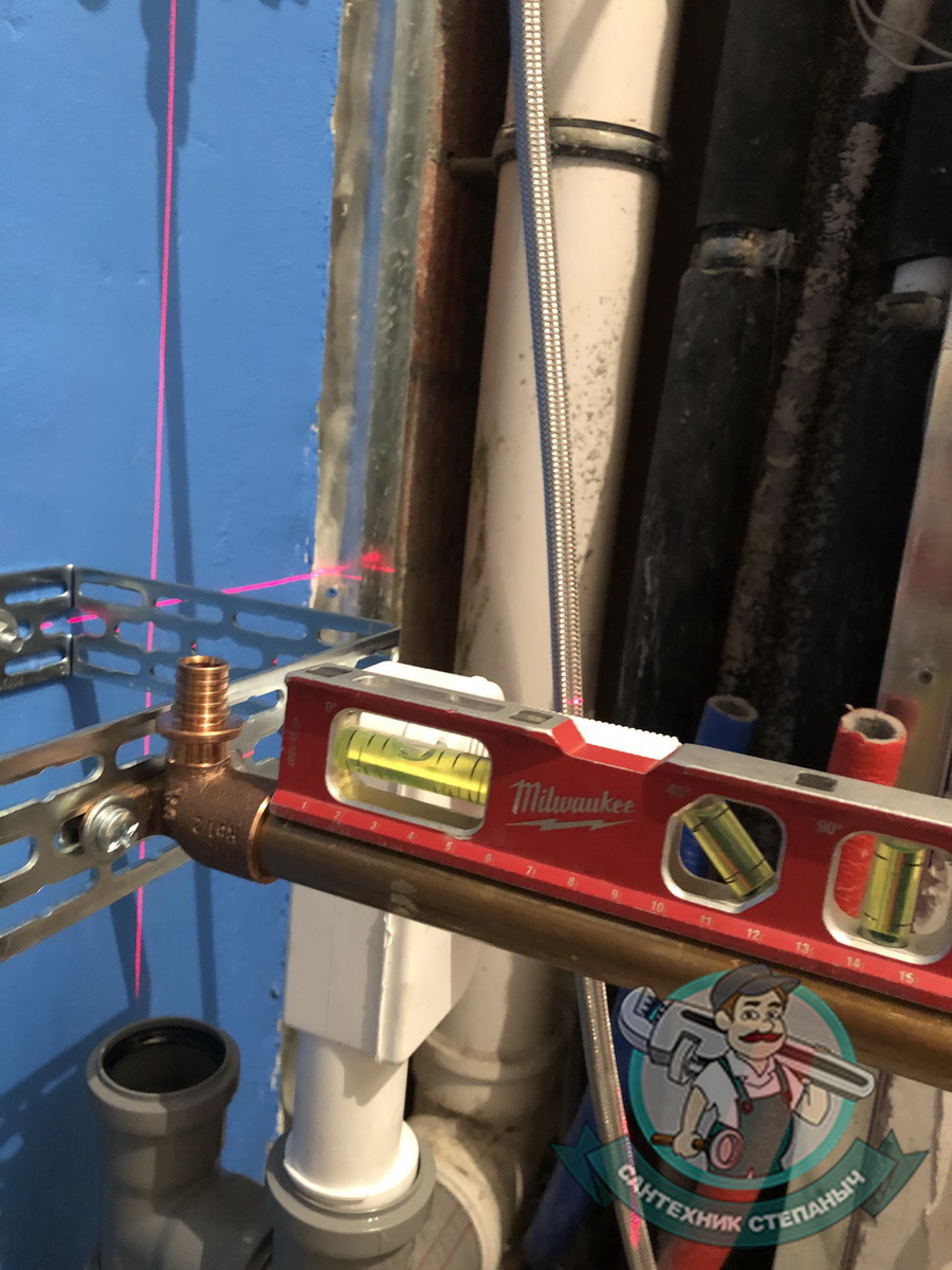 Сантехническая ниша была очень узкой (в районе 20 см) и разместить в ней полноценный узел ввода не представлялось возможным, то приняли решение вынести узел ввода за пределы сантехническая ниши. Для этого переварили врезки, вынесли за пределы сантехнической ниши и сформировали сантехнический люк над стиральной машинкой. В дальнейшем заказчик во время отделки зашьёт наш узел ввода.