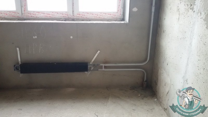 | Монтаж радиатора отопления с разводкой труб (при лучевой системе отопления) |